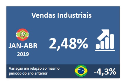 Florianópolis, 3.6.2019 – No acumulado do ano até abril, as vendas da indústria catarinense cresceram 2,5%, mostra pesquisa da FIESC. Foram observados avanços em nove das 14 atividades analisadas. As maiores ampliações foram registradas em informática e eletrônicos (19%), produtos de metal (16%) e em veículos, reboques e carroceria (15,4%). Os desempenhos negativos foram registrados em vestuário e acessórios (-6%), em produtos têxteis (-2,1%) e em minerais não metálicos (-1,8%). Veja os dados completos