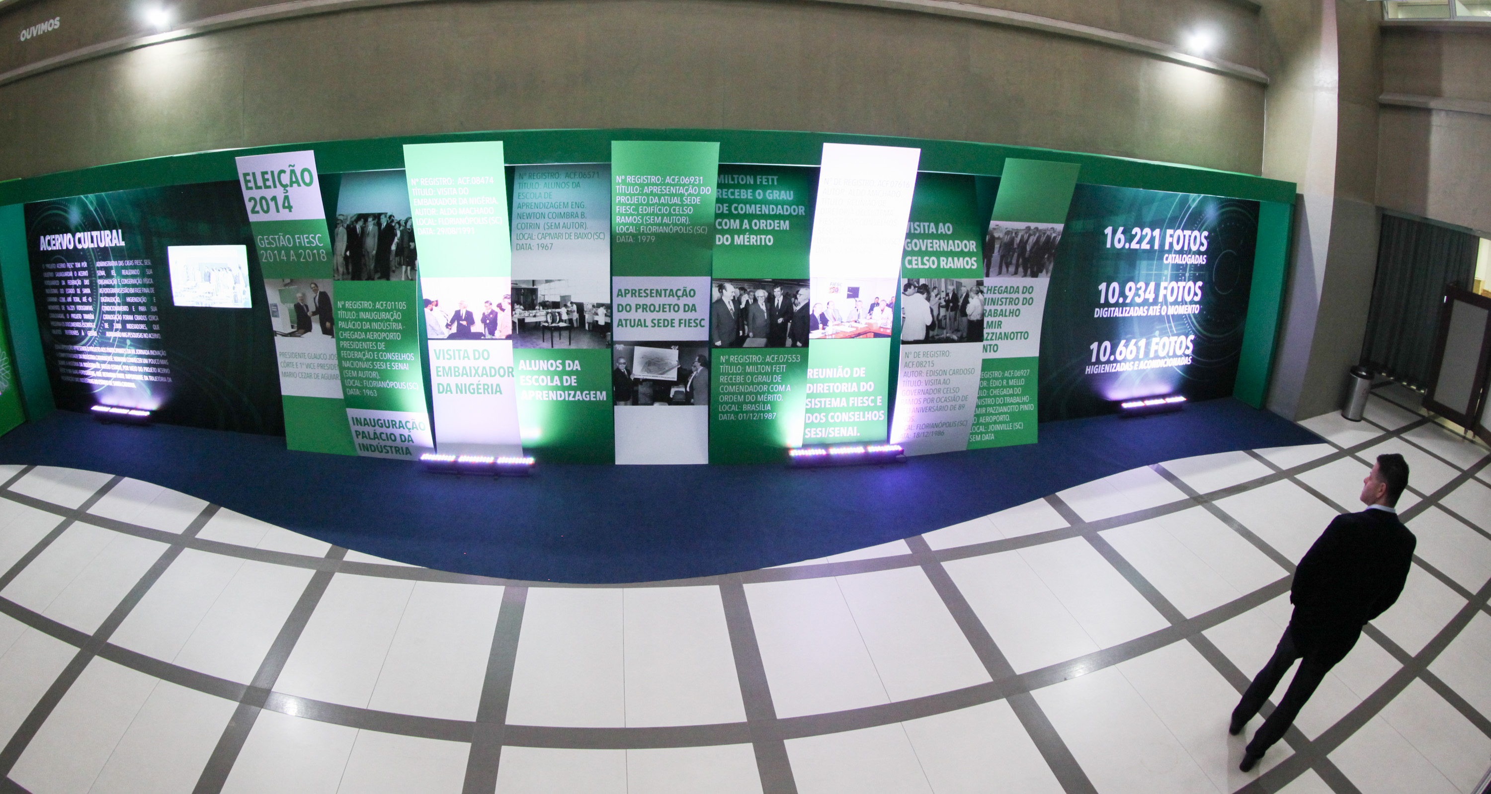 Florianópolis, 26.6.2018 – Está exposto na Jornada Inovação e Competitividade o acervo fotográfico da FIESC, que até o momento reúne 16,2 mil fotografias catalogadas. A iniciativa integra um projeto que também preserva os documentos escritos e objetos relativos à gestão administrativa da Federação e suas entidades (SESI, SENAI e IEL). O trabalho também mostra a história da indústria e retrata parte importante da trajetória da FIESC.