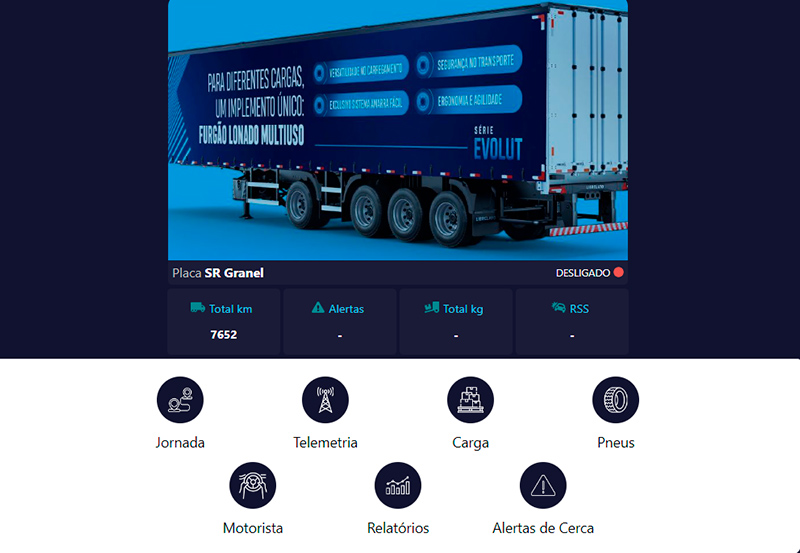 Plataforma digital fornece informações como localização e pressão e temperatura dos pneus - Foto: Divulgação
