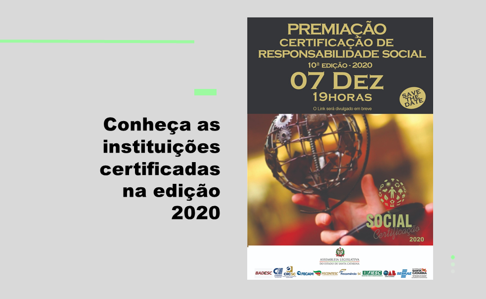 Este ano, as Equipes da Comissão Mista e Comissão de Assessoramento, tiveram um desafio maior que em outras edições. Devido a pandemia causada pelo coronavírus, todos os trabalhos tiveram que ser realizados virtualmente. Foram mais de 30 reuniões online, buscando a melhor forma de receber e analisar todas as inscrições de empresas e entidades catarinenses. O resultado foram 130 inscrições recebidas, 100 efetivadas e 77 empresas receberão a Certificação 2020. Além das certificadas, 7 empresas e entidades de todos os segmentos, receberão o Troféu Responsabilidade Social 2020 pelo reconhecimento ao trabalho realizado e apresentado nos seus balanços sociais.