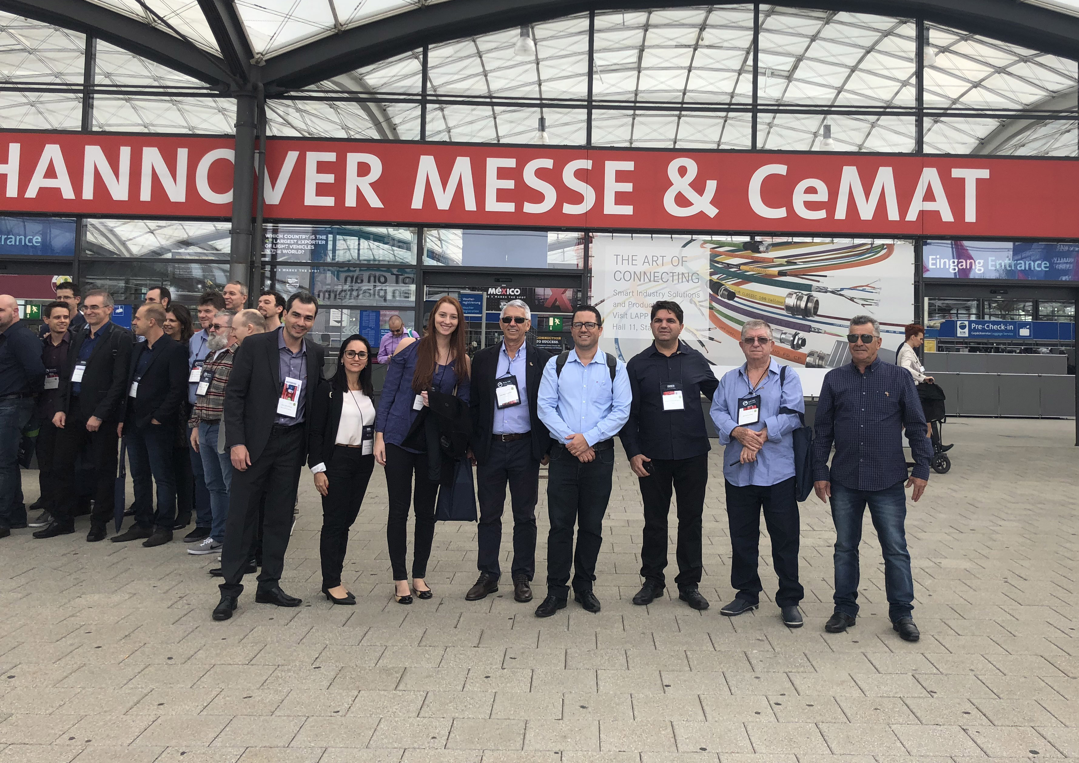 Florianópolis, 25.4.2018 – Empresários catarinenses que integram comitiva liderada pela Confederação Nacional da Indústria (CNI), com o apoio da FIESC, visitam esta semana a Feira Industrial de Hannover, na Alemanha. A missão, iniciada em 21 de abril, segue até sexta-feira (27). Os participantes estão conferindo novidades em automação integrada, movimento e direção de empresas como Huawei Tecnologies, WSCAD, In-Tech, ODVA, Rittal e Young Tech Enterprises.