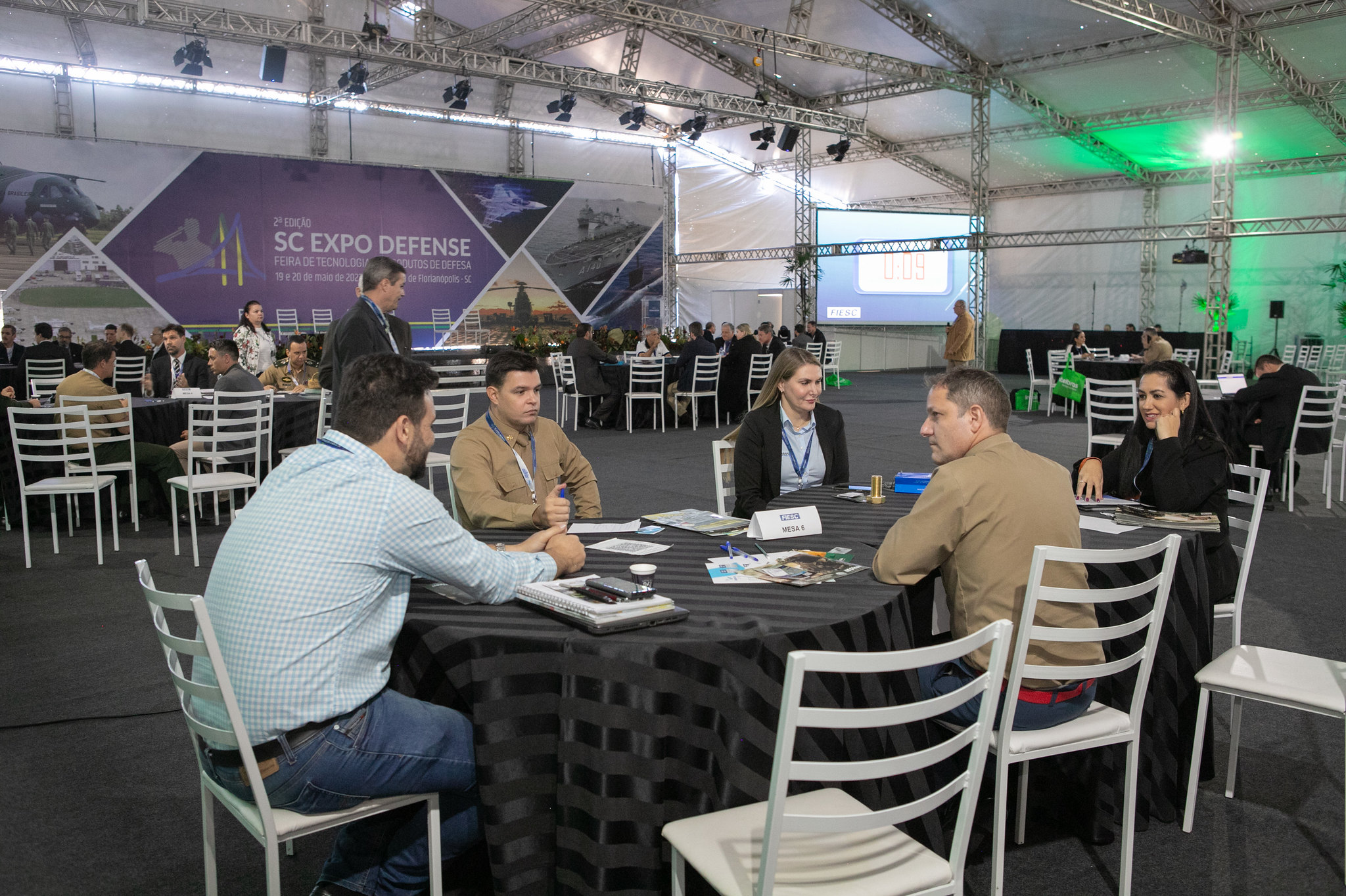 Florianópolis, 20.05.2022 – Em uma rodada de negócios realizada no segundo dia (sexta, 20) da Expo Defense 2022, 35 indústrias apresentaram seus produtos a forças de segurança do país. Iniciativa do Comitê da Indústria da Defesa (Comdefesa) da Federação das Indústrias de Santa Catarina (FIESC), a rodada se iniciou com a apresentação das políticas e procedimentos de compras do Exército, Marinha, Aeronáutica e dos órgãos públicos de Santa Catarina Polícia Militar, Bombeiros Militares e Segurança Pública/Polícia Civil.
