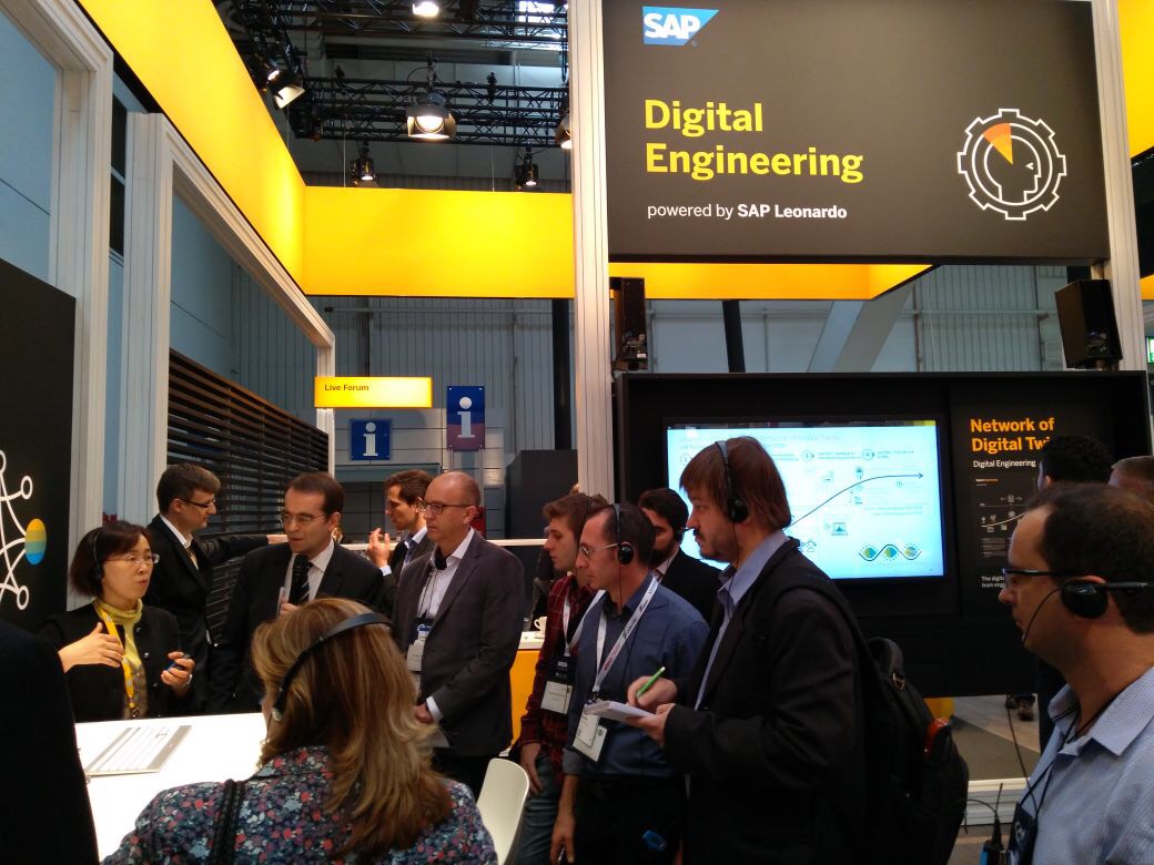 Em seu stand, a SAP mostra que com a tecnologia digital, é possível abrir caminho para a indústria integrada. O usuário pode monitorar e analisar os sistemas e máquinas ao longo de todo o ciclo de vida, desde o esboço inicial até a operação final.