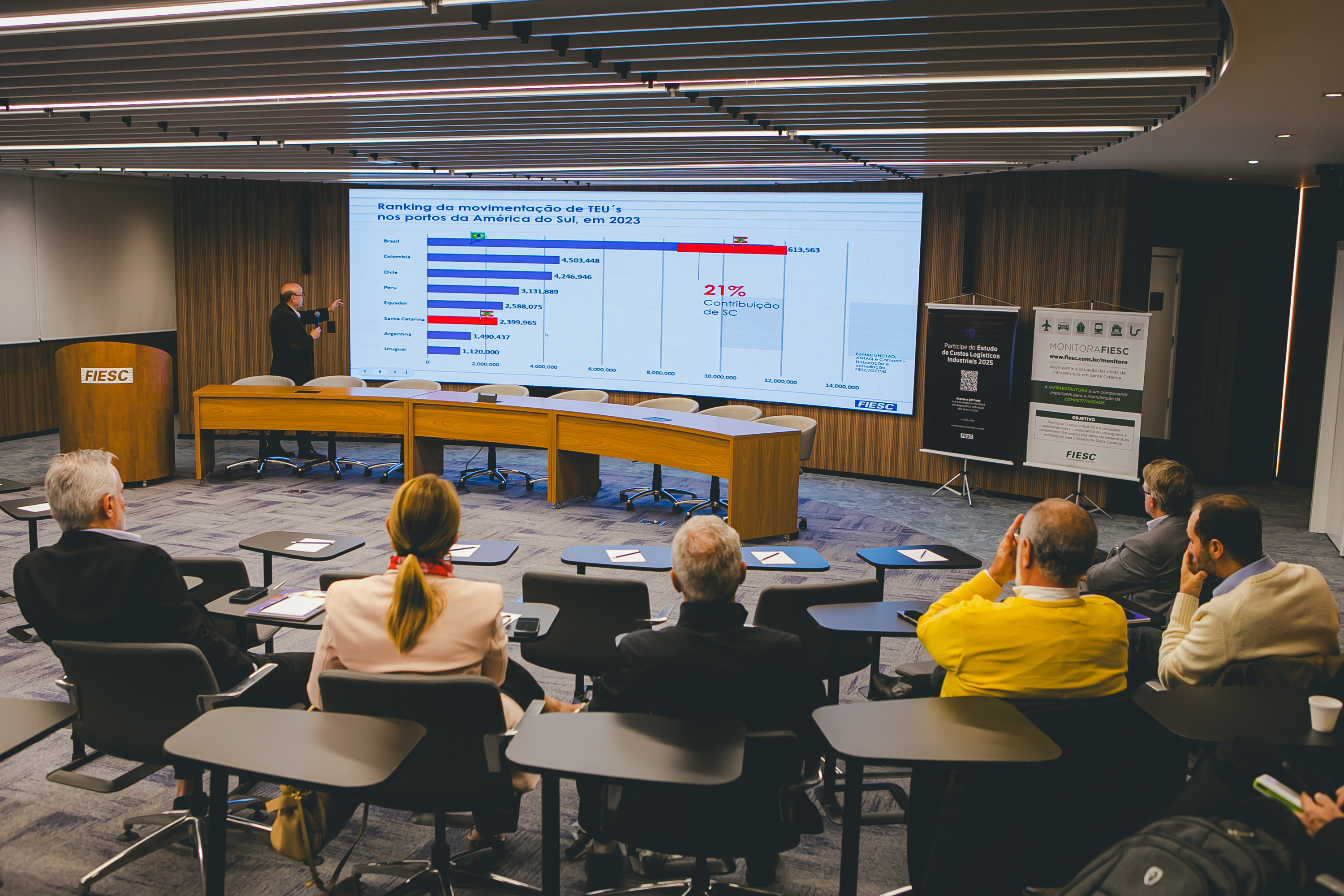 Na ocasião, a FIESC reiterou sua preocupação com a não inserção de SC nos estudos preliminares do Plano, principalmente em relação aos dados de movimentação portuária no estado.