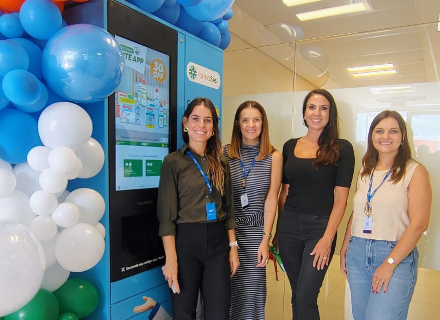A implantação do equipamento foi marcada por ato simbólico com a presença da diretora da Frameport, Maria Fernanda Francio Parisotto; da gerente executiva de SESI, SENAI e IEL da regional, Graziela Pereira da Silva; além de Carolina Sopelsa, gerente de operações de farmácia e alimentação, e Manoele Jendrassiak, agente de convênios farmaSESI.