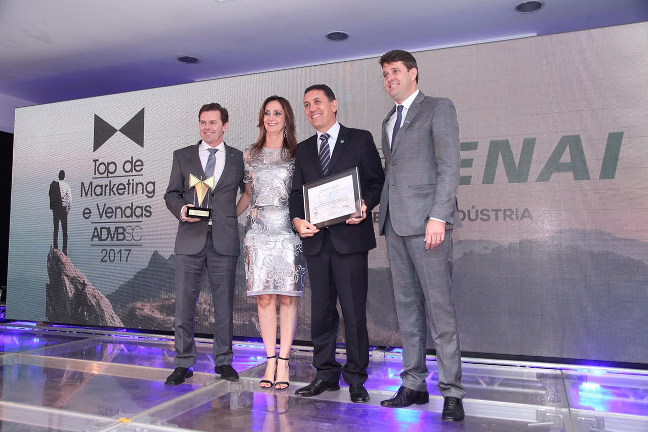 Florianópolis, 23.11.2017 – O SENAI/SC, entidade da FIESC, foi um dos agraciados do Prêmio Top de Marketing ADVB com o case Mundo SENAI. A entrega da premiação ocorreu na noite desta quarta-feira (22), no Lira Tênis Clube, em Florianópolis. “É muito gratificante o reconhecimento, pelo bom desempenho de uma prática que contribui com a competitividade da indústria, principalmente, quando esta passa a ser seguida nacionalmente. A equipe está orgulhosa e segue com seu principal objetivo, inspirar pessoas e transformar o mundo”, afirma o diretor regional do SENAI/SC, Jefferson de Oliveira Gomes.