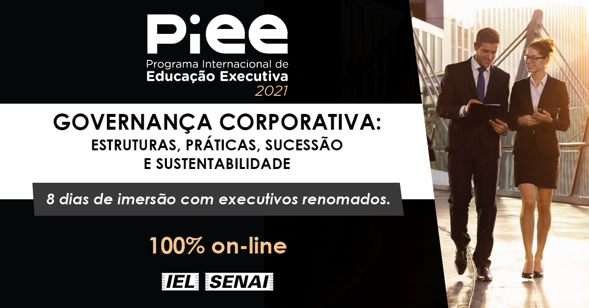 Florianópolis, 20.4.2021 – O Programa Internacional de Educação Executiva (PIEE) está com as inscrições abertas para nova turma. Com o objetivo de aperfeiçoar o conhecimento em gestão empresarial utilizando a imersão como canal de aprendizado e networking, o Programa capacita executivos, gestores e sucessores na utilização de ferramentas, práticas e técnicas mundiais em gestão e inovação, fundamentais na tomada de decisões estratégicas. Serão oito encontros com a temática Governança Corporativa: estruturas, práticas, sucessão e sustentabilidade, totalmente online com início no dia 27 de julho.