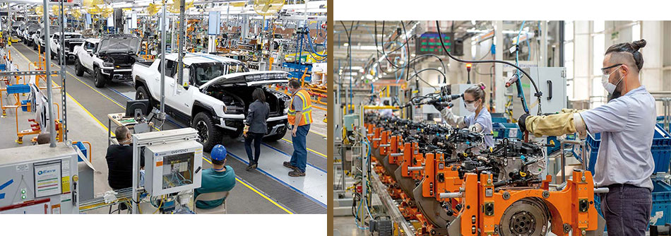Fábricas da GM em Detroit, nos EUA (esq.), e em Joinville: intenção é usar o robô em trodas as unidades da motnadora. - Foto: Divulgação